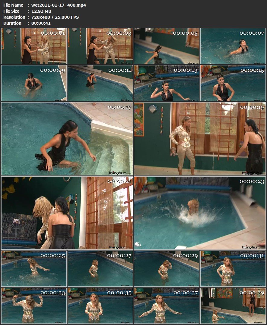 Well, it´s a Eurobabe wetlook fantasy for us at least, but Rachel Evans and her sexy brunette friend are feeling frisky and in need of a good old fashioned catfight! Nevermind that they´re dressed up in some satin sexiness, when bitches get upset all hell breaks loose and if there happens to be a pool in the area then you know it´s quickly gonna get wet!! Before long Rachel gets the better of her "friend" and chucks her right into the pool, but Rachel is nothing but stupid if she doesn´t think she´s eventually gonna get dragged in as well!! P.S. This scene is from a never released Eurobabe TV pilot, so enjoy!