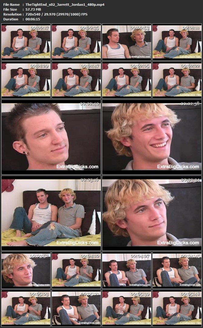 Young, hung and full of cum can sometimes be just a catch-phrase, but with the two guys we have today, and one of them with the 8.5´ thick, cut spear like Jarrett, it´s not just words, but a description of the players and action involved in this week´s scorcher of a tail tale. We have seen Jarrett working his huge cock alone, and then there was that famous oral fest with the even more hung Kiko, but today we get to see Jarrett do what he does best: fuck. From deep, passionate kisses to Jordan inhaling Jarrett´s considerable cock, their lust for each other is evident from the minute the camera starts to roll. Jarrett´s throbbing cock formed a lump in his tight, lycra shorts that Jordan needed to admire. Who can blame him? Seeing something so thick and so long on a guy this hot in shorts is a scenic vista that makes you want to grab that bone and never let go. Jordan´s long, sensuous tongue and deep throat engulfs Jarrett´s cock to the base before the two move into a red hot 69 where Jarrett´s tongue finds that Jordan´s hole is ready for some serious attention. Jarrett is just the man to give it to him.Lubing up Jordan´s ass, Jarrett moves him into doggie position and begins a slow insertion, easing that considerable sausage into his hole. Jordan´s eyes rolling back into his head, soft moans and the pressing forward of his hips indicate just what a great top Jarrett is. Jarrett rolls him over into missionary position, grinding his pelvis into Jordan.Fevered by Jarrett´s pitch, Jordan climbs on top and rides that meat like an athlete vying for the most valuable player trophy. With Jarrett´s cock impaled through Jordan´s hole and Jordan´s tongue down Jarrett´s throat, being filled with Jarrett from both ends was Jordan´s last inning of an explosive finish right onto Jarrett´s abs with Jarrett´s quite considerable load soon to follow. They are still young and still hung, but no longer full of cum – just as it should be!