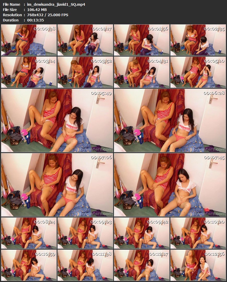 Two sexy, slender Asian girls are conversing and rubbing cream on their bodies when one proposes that a masturbation session.Jia asks to watch Dewisandra´s pussy and exclaims how nice it looks. The 2 girls chat and whisper to one another as they undress and touch themselves.Dewisandra asks Jia the way she likes to do it and Jia replies ´with my palms´, however Dewisandra has different manners in your mind. . .and these two Asian babes have a sensuous and thrilling masturbation session which closes with Dewisandra exclaiming, “oh my God its wet everywhere!” |
