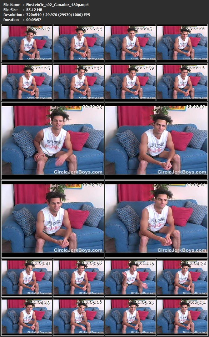 Ganador is an unusual name, and this 26-year-old wonder from down under is an unusual guy. Looking like the star-crossed son of Adam Ant from the 80´s, mixed with the bone structure of a male model in a perpetual-living infomercial for the latest edgy music gadget, Ganador proves to be as wild as his hair and just as off the beaten path. This Aussie did a quick change as we adjusted the lights, grabbing a CircleJerkBoys.com tank top and pulling on some green gym shorts very high, which in combination with that Einstein ´do, may just establish a new trend called geek heat. Just as quickly, and seemingly moving in slow motion, he strips them right off to reveal a tight, naturally-defined torso & abs, and quite the round-hard butt in a pair of tighty-whities. Apparently, Ganador likes being naked as much as possible, as those shorts are history just as quickly. Suddenly, we are face-to-face with a very thick, tall jungle of dark pubes and a cock that while still soft, is one fat slab of meat.Looking like he has a cockscomb on his head, he begins to gently massage the cock down below as he does a round of seated Yoga. Working every muscle from his neck to his toes, he uses his body as a vehicle to feed his hungry fist more and more cock with each movement. Ganador then piles up the pillows and begins to go for a ride, his hips undulating back and forth with the precision of a man on a very well-planned mission. Ganador doesn´t just dry hump, he literally makes love to those cushions, drawing pleasure as if he was really deep inside a hole. We move in to get a closer view of that very fuckable butt of his, dusted in brown hair and just begging for some attention of its own. As he catches us, he flashes a wild look into the lens that says, look all you want, but don´t touch, or was that really a dare?Standing up, Ganador stretches to pump up the lean line of every one of his muscles and lets us enjoy the show of a very well-honed body, devoid of any fat. He moves in a Zen-like sexual trance all his own where he is both the charmer and the snake at the same time. Moving to the couch for the final assault, his cock now becomes the center of his universe as he pounds away at his tool with a fierceness that is almost primal. Grabbing the shaft so hard it seems like the head will go flying across the room, what does go flying instead is a very thick load of jizz that slithers down his pole while he stares right into the camera with one of those smoldering looks from a Dolce and Gabbana cologne ad. We are wondering if he was thinking he could use some help next time.