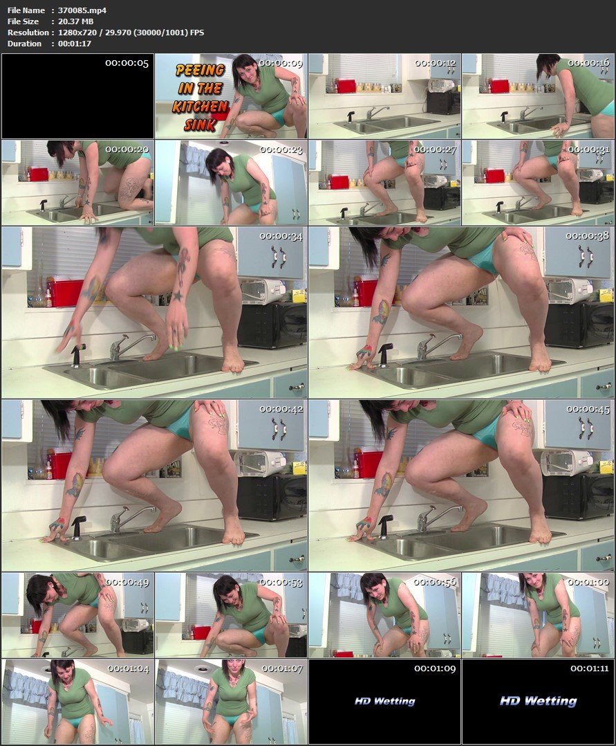 Our girl, Genny, tries to urine to the kitchen sink through her panties. Her aim isnt that good, however, and she’s pee ends up splattering! |