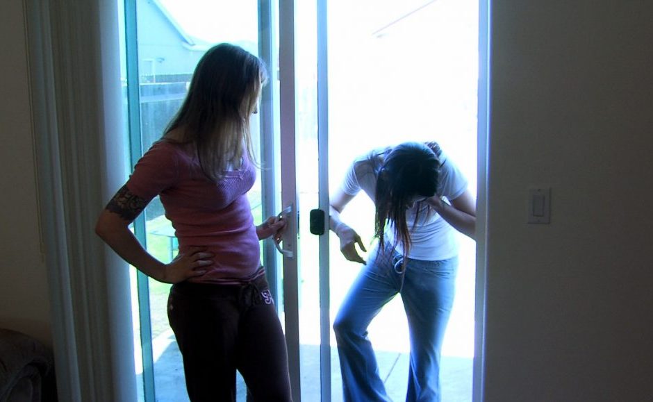 Mikki plays a nasty prank on Paige- Locking her out when she wants to pee.Mikki claims to have seen a beautiful blue-jay out in the lawn. Paige cant find it and steps out to attempt to acquire a better view.As it turns out, there’s absolutely no blue-jay. It is a trick. Once she’s on the opposite side of the doorway, Mikki shuts and locks it.Paige is more desperate to pee. Despite her pleas, Mikki will not let her in. Just have Paige comes with a accident, soaking her pants, does the doorway opens.