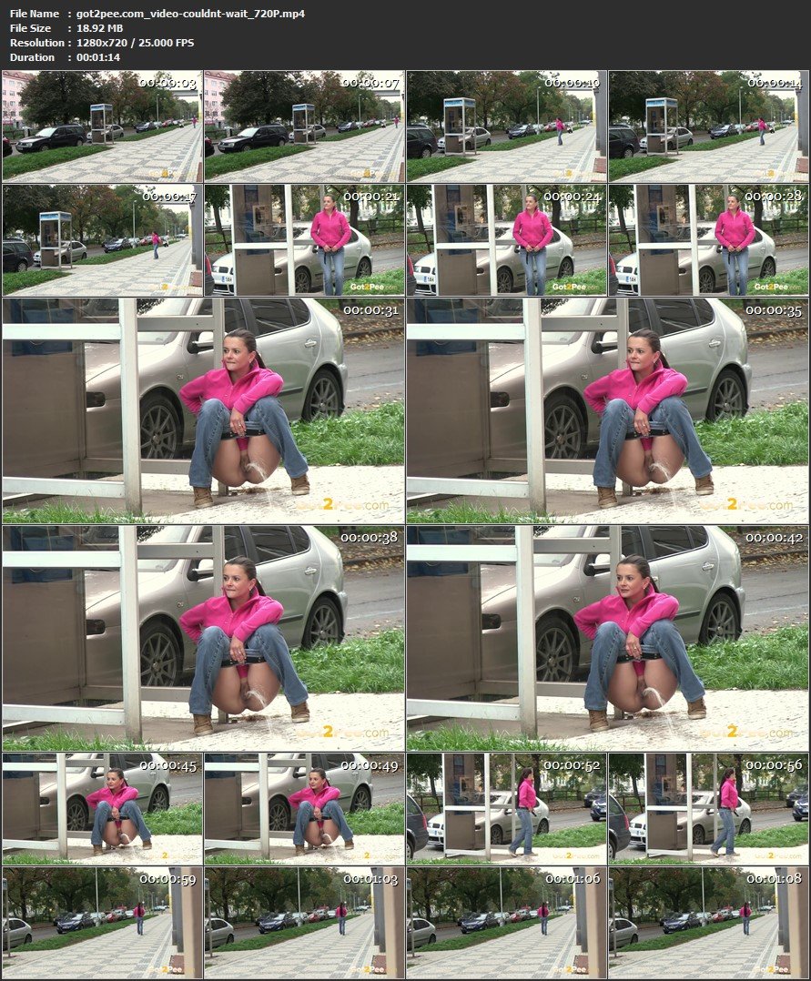 When she needs to pee this brunette is walking into the city. She cant wait so she squats next to a phone box, pulls down her denims and sprays piss all over the floor. She nearly pees her pants! |