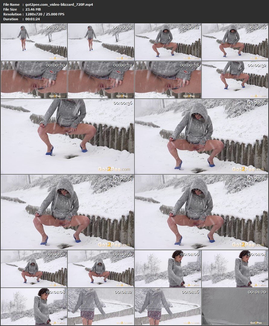 A European girl wearing a hoodie and miniskirt teeters through the snow until she laps and retains her panties spraying an adequate stream of piss over the ground, melting the snow beneath her! |