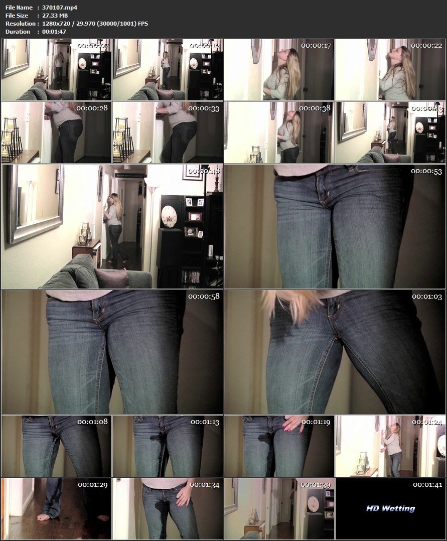 Desperate to pee, Delilah sprints into the bathroom only to discover the door is already locked. She pounds and so does her best to maintain it. Unfortunately for her pressure in her bladder is too much and that she ends up having an accident that is awkward. |