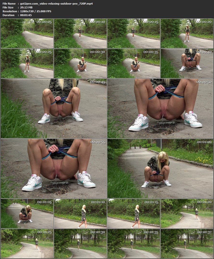 Today on Got2Pee we have a long blonde that walks along a route at the suburbs while wearing a dress that is short. She feels the start of desperation rather than wetting her panties, she squatting to pee, pulls and quits them down and filling out a hole in the path below!