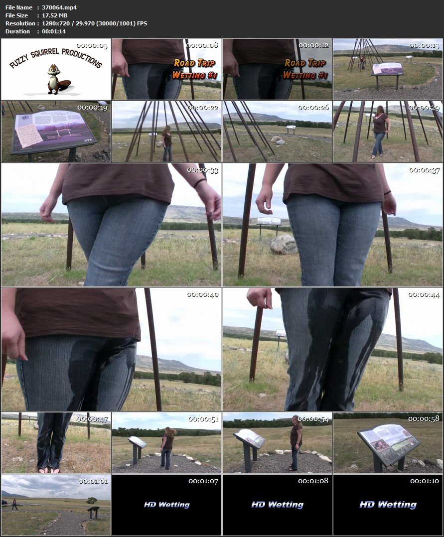 Recently TVGuy, the webmaster of HD Wetting, embarked upon a cross country road trip with his girlfriend Heather. Somewhere in Montana Heather needed to pee. Unable to find a rest area on time, Heather jumps out of the car, makes sure no one is around, and pees in her jeans.