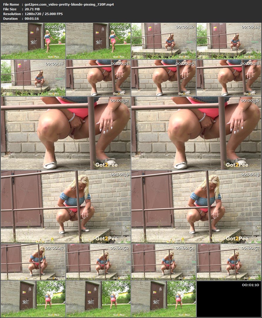 Today on Got2Pee we have another pretty blonde who’s in town. She rushes around the corner of a building and ceases, squatting to pee on top of some tangible steps. She seems like she’s focusing on her pee stream and doesnt appear to care if anyone may be seeing her into this public pissing picture! |